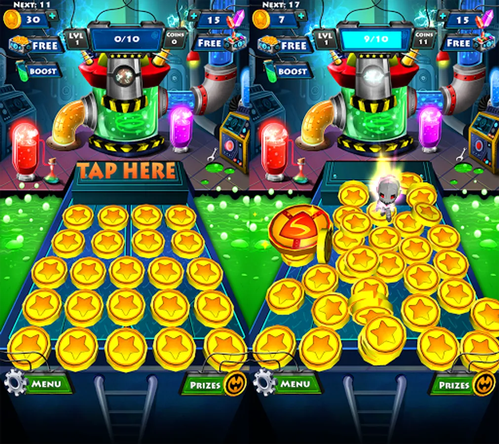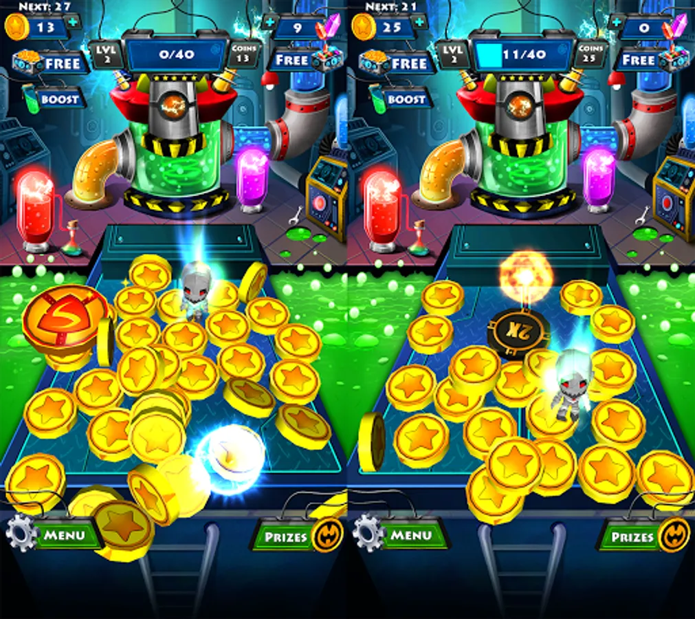 Ready to jolt sheeny gold coins and exciting prizes? Drop coins from your pocket, through the slots and into the pusher. Increase coin collection, by pushing the coins through the slope. Watch out though! They tend to shake off from the sides, into the lava.