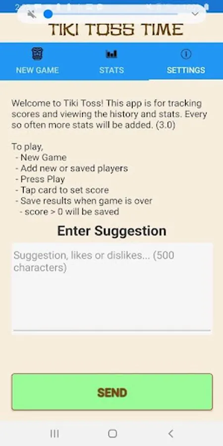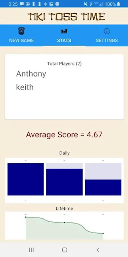 Welcome to the TIKI TOSS game. This is the game where you swing the ring on a string to see how many times it takes to get it on the hook. This app allows you to record each players score and save it to the cloud. You can see stats like the players average score for hooking the ring. Also, see the history of your throws daily and lifetime. New upgrades will be added frequently, so enjoy the app.