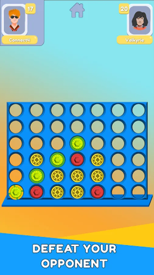 2 Players mode allows you to play with another player on the differents device. - "Two players": The classic duel in which each player is playing by turns their color chips. The first one that connects 4 in line wins.