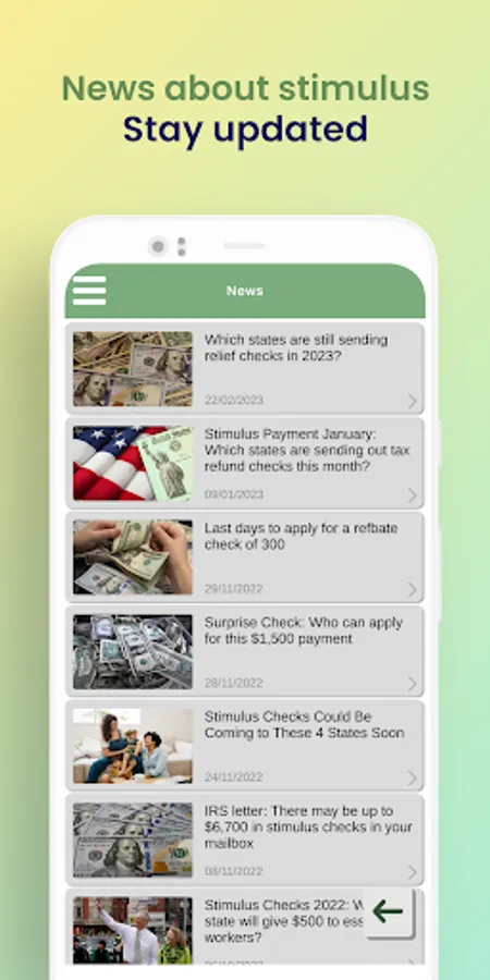 Application to solve all your questions about first, second, third, and forth stimulus check that the US government approved to all citizens who meets the requirements. Stand by and check periodically our app to stay updated, we will notice you if there is releasen a fifth stimulus check or other additional ones.