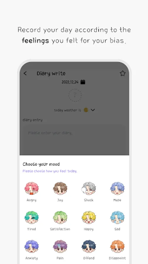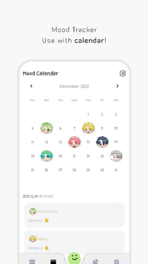 You can record your mood with emotional emoticons and check them at a glance on the calendar.