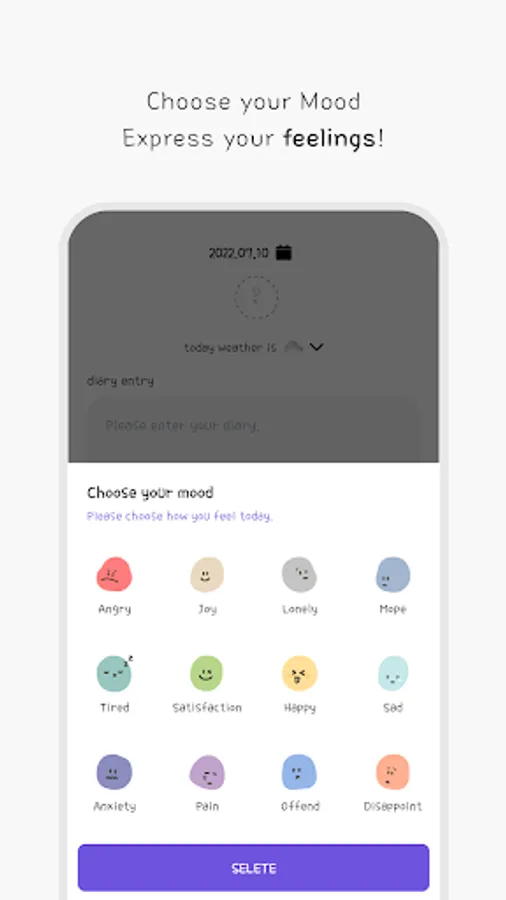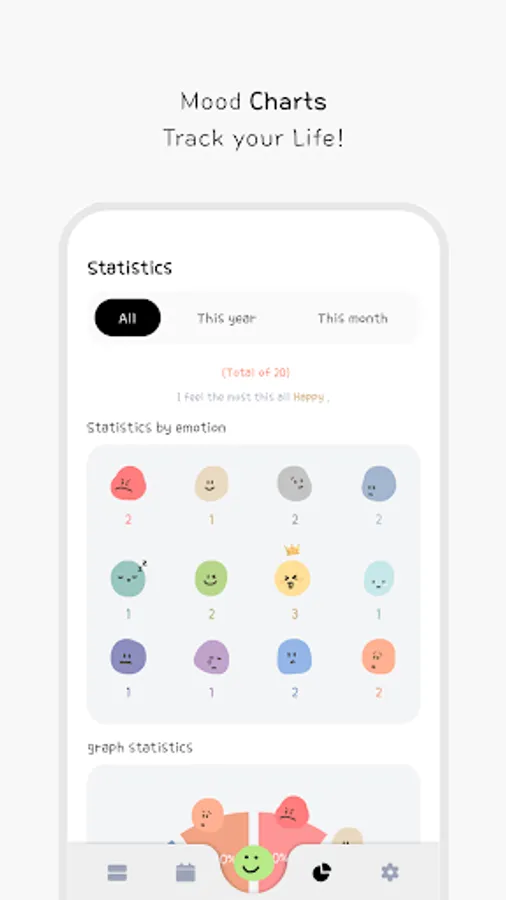 You can record your mood with emoticons and check it at a glance on the calendar.