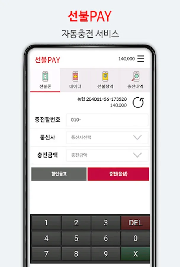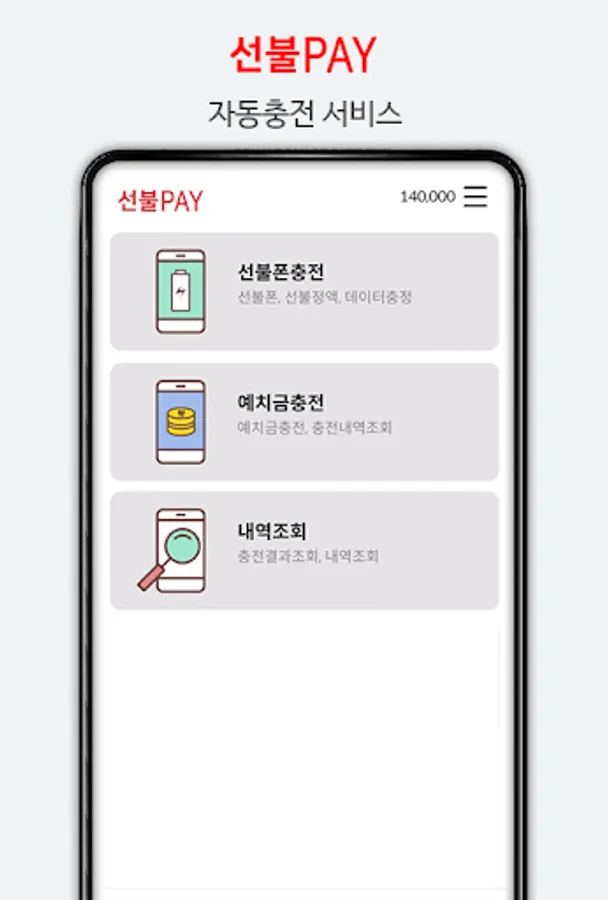 Prepaid PAY is an automatic charging service that allows you to charge prepaid phones, postpaid phones, and data.
