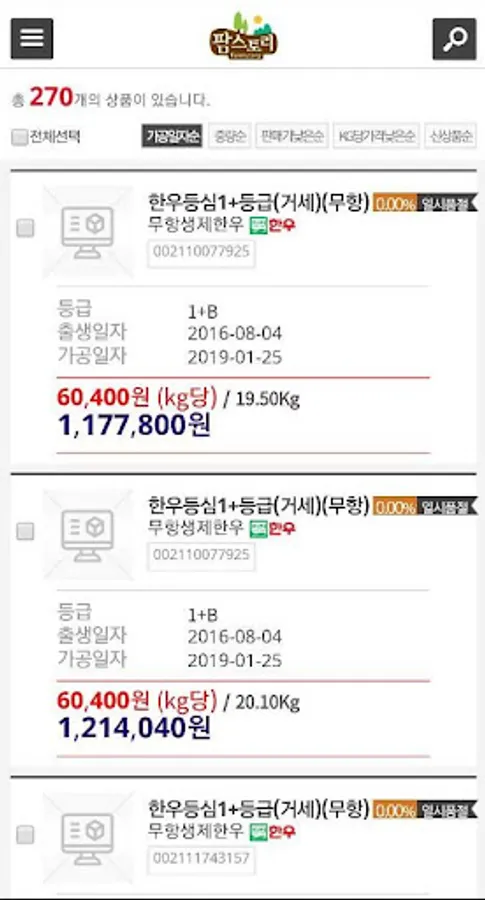 Hanwoo box unit, Hanwoo vacuum pack unit, Hanwoo aged meat, Pork box unit, Pork meat unit, Chicken / Duck processed product, Hanwoo / Pork processed product,