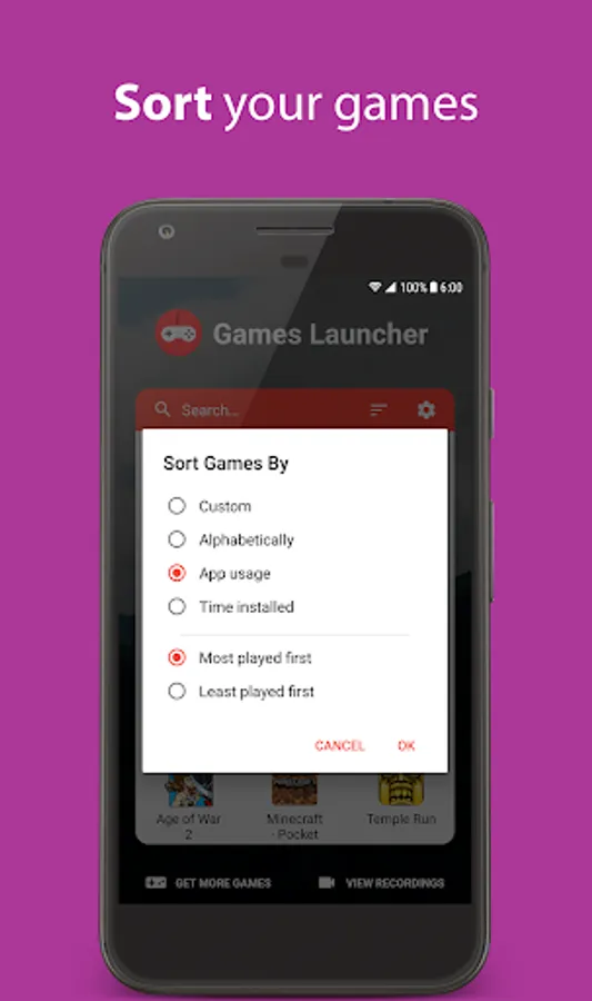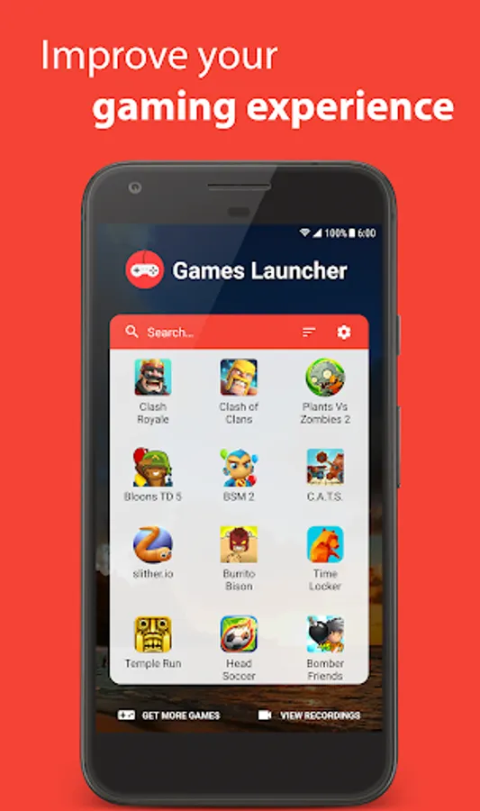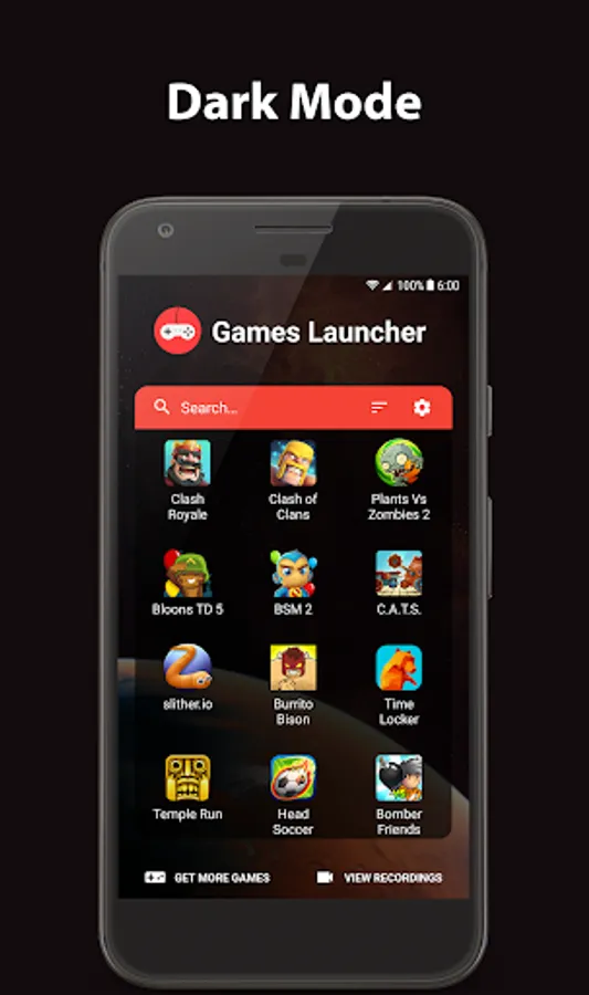 Games Launcher can record your screen while you play. You can view and share the recordings right from the app.