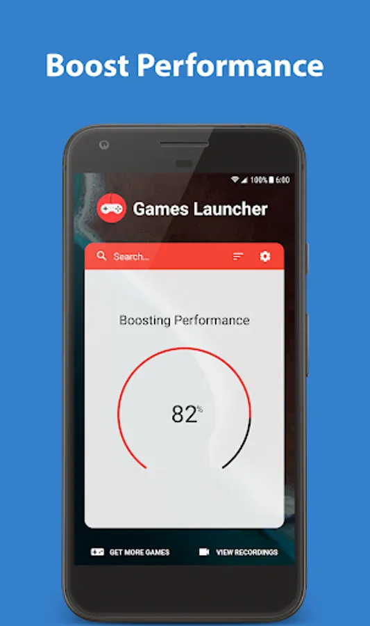 Games Launcher boosts performance by freeing up memory and stopping unused background processes.