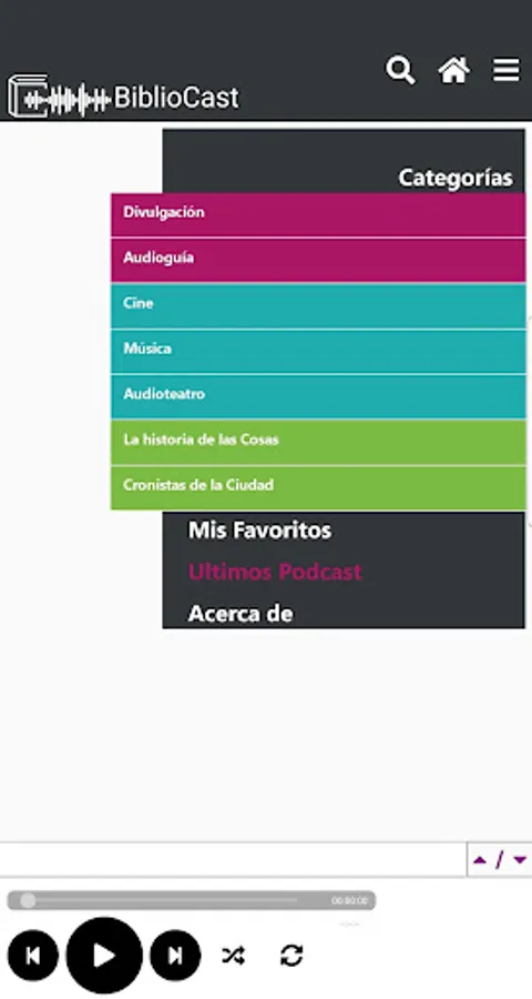 • You will have an audio player integrated in the application with all the essential actions for a better experience.
