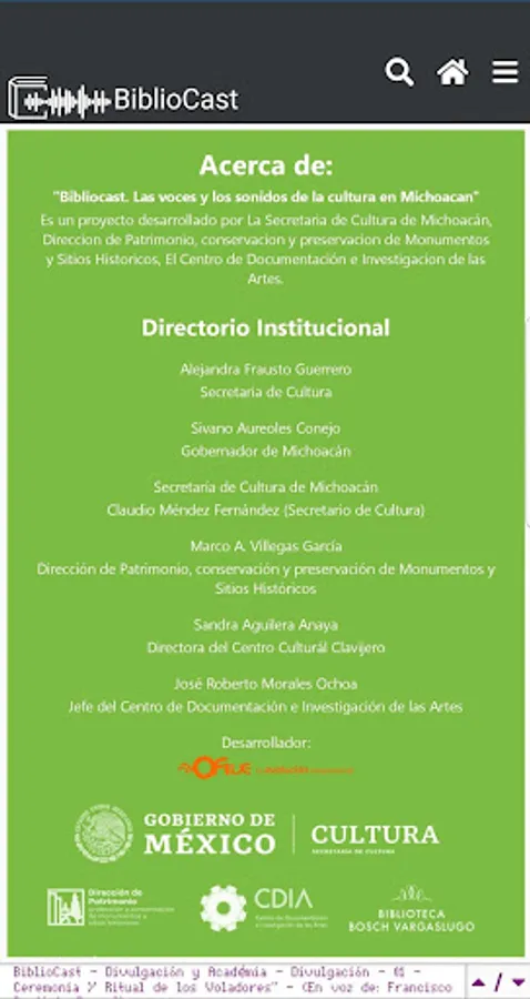 Through this application you can listen to the most interesting podcasts about the cultural life of Michoacán, its heritage, its artists and its history.