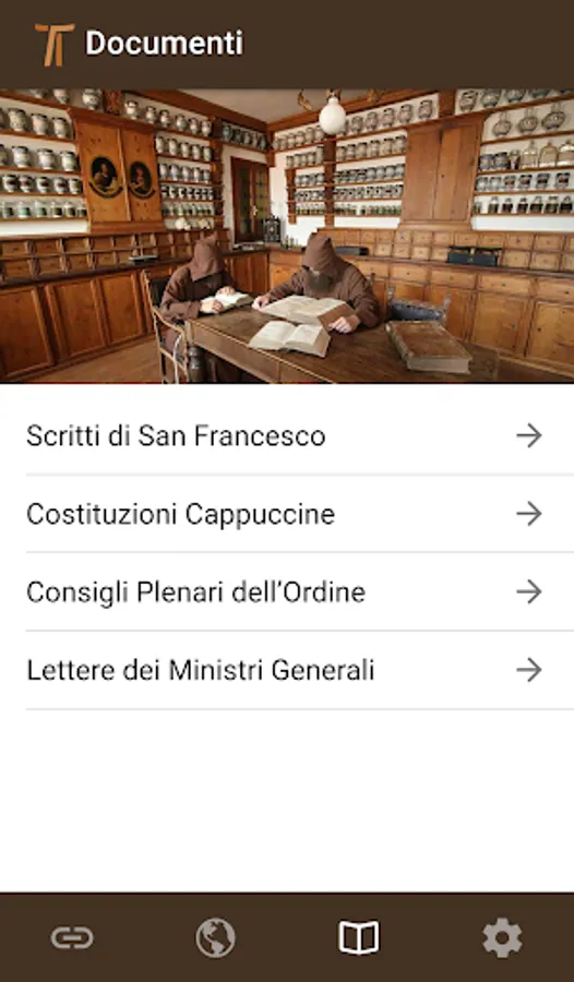 It is also possible to read documents without internet access (offline). The documents available will be the writings of St. Francis (Rule and Testament), the Capuchin Constitutions, the documents of the Plenary Councils of the Order, and the letters of the general ministers.