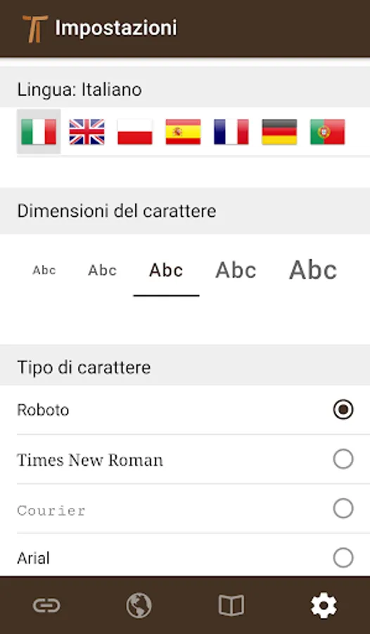 Beyond the basic settings available in every app, it is possible to modify the size and font of the characters, select day/night reading mode, and choose among the seven available languages. It is also possible to activate or deactivate notification of when new information is published on the website www.ofmcap.org.