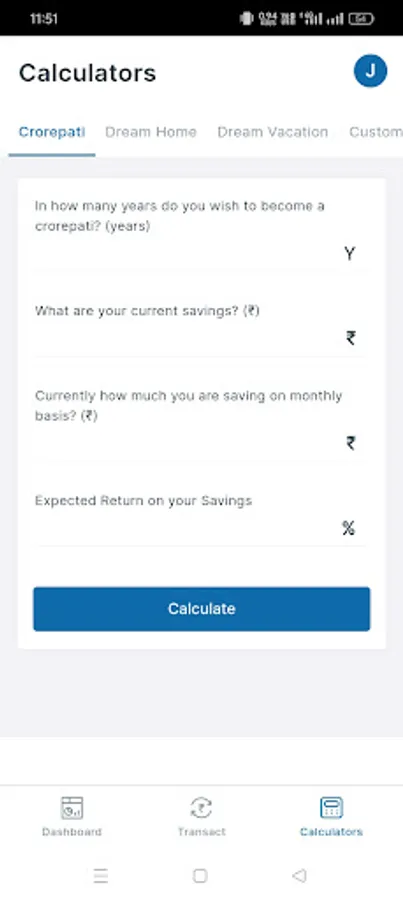 User can also check estimate of wealth required to achieve their financial goals thru the available Wealth calculators.