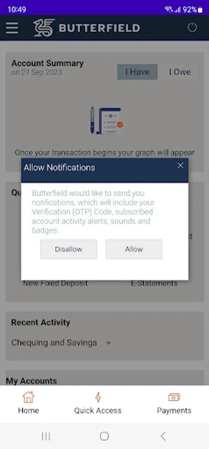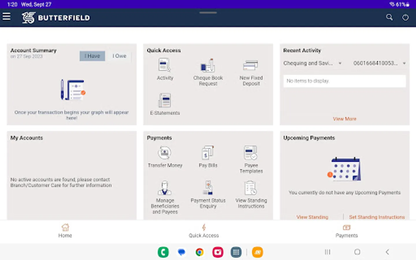 NOTE: You must have an active account and have completed an online application in order to use Butterfield Online Banking.