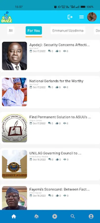 Enjoy trending video news feed from International, Local, Sports, Tech, Entertainment and World News buzzing on the Ogabuzz app.