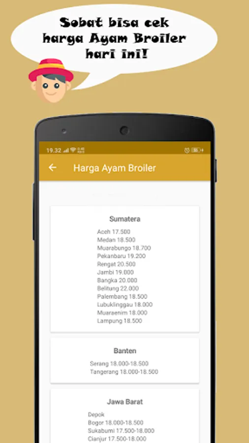 This feature provides information on the price of broiler chickens in various regions, updated every day.