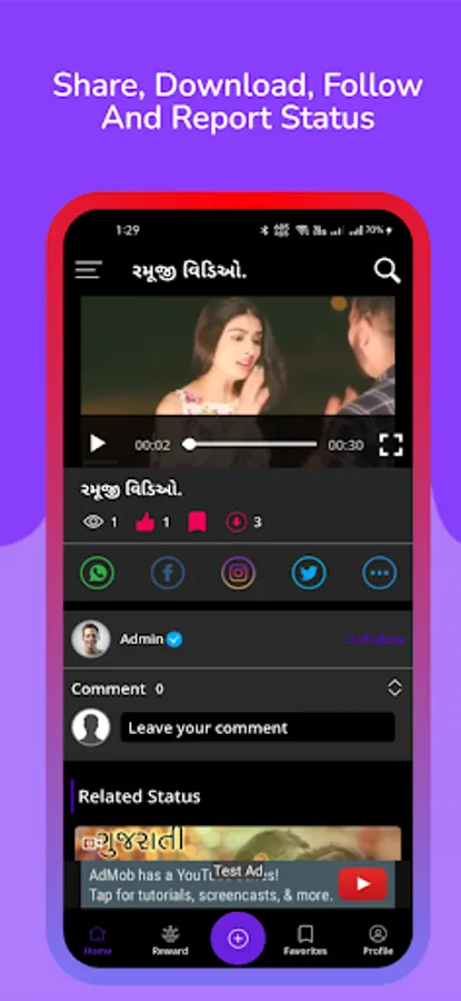 The best part of this status app is getting points which is very easy by just watching or sharing content. You will get points when:-