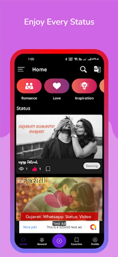 Best collection of Videos, Images, GIFs, and Quotes to share on social media platforms. The Daily Status app has multiple collections and categories that are easy to identify and search. To simplify things, the status app has Latest, Popular, Follow, Categories, Favorites, and Downloads sections to separate all the statuses. Every status has its own categories as well like Love, Funny, Sad, Happy, Dance, etc. to easily access the content.
