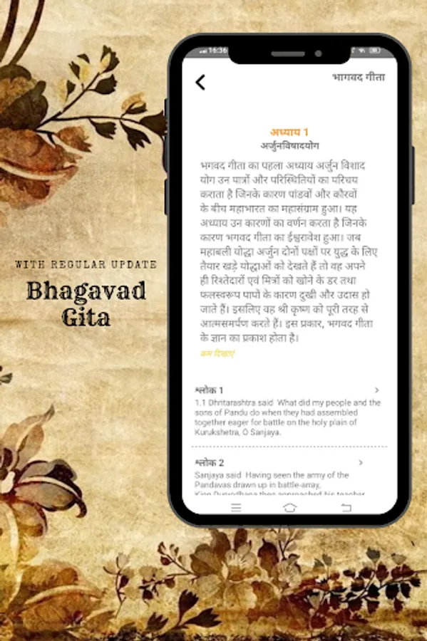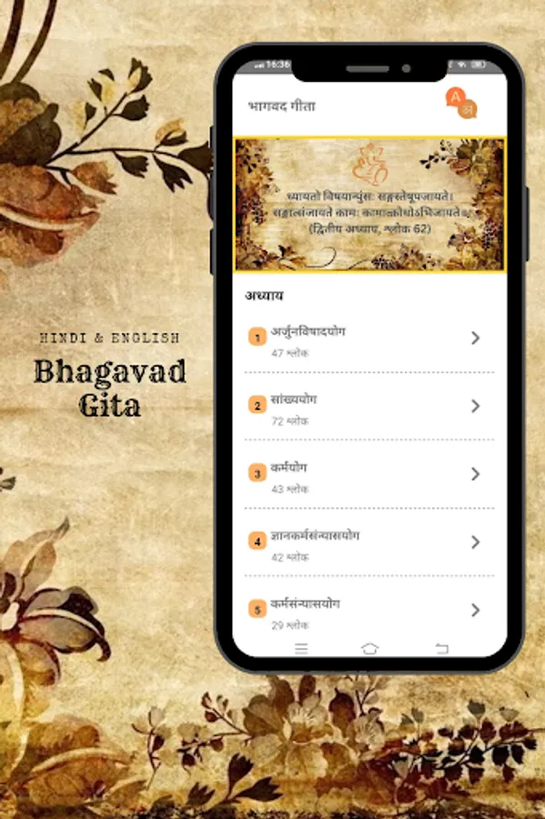 Explore Gita's wisdom in Hindi and English with our bilingual interface. Whether native or learning, this app fosters a deep connection with ancient teachings.