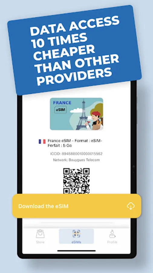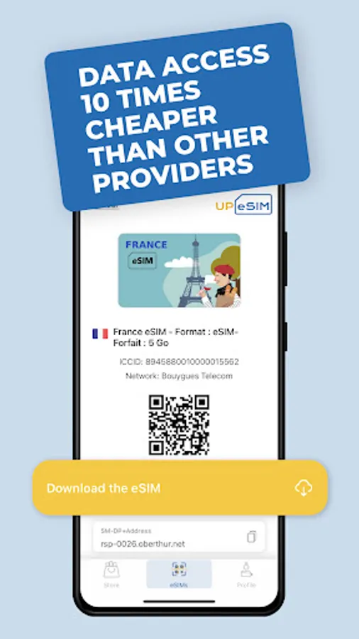Avoid roaming fees and unnecessary charges via a nomad embedded sim card that you just download to your cell phone, with a QR code. You simply pay as you go. Like many others who have traveled with our esim, you will see how much cheaper it is compared to your mobile service provider.