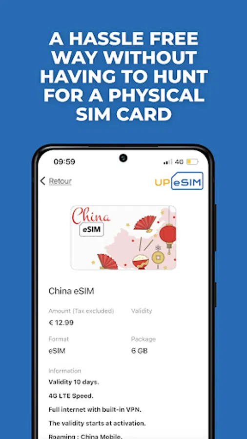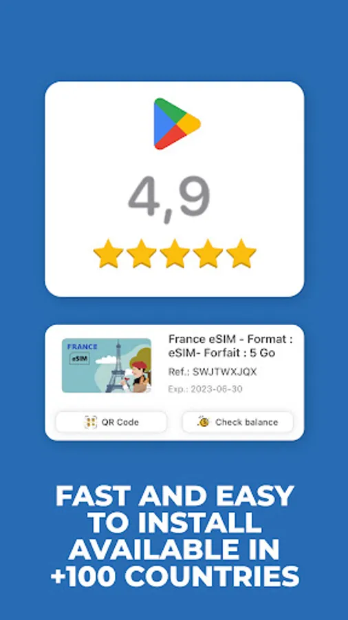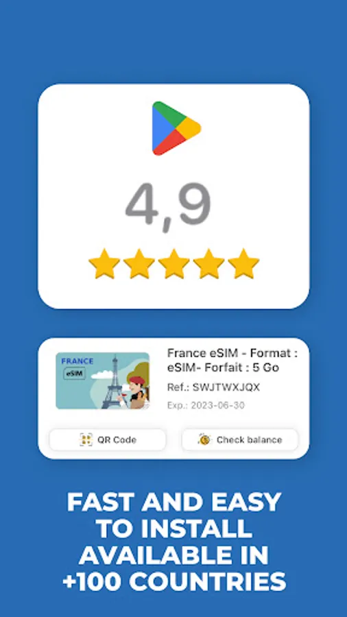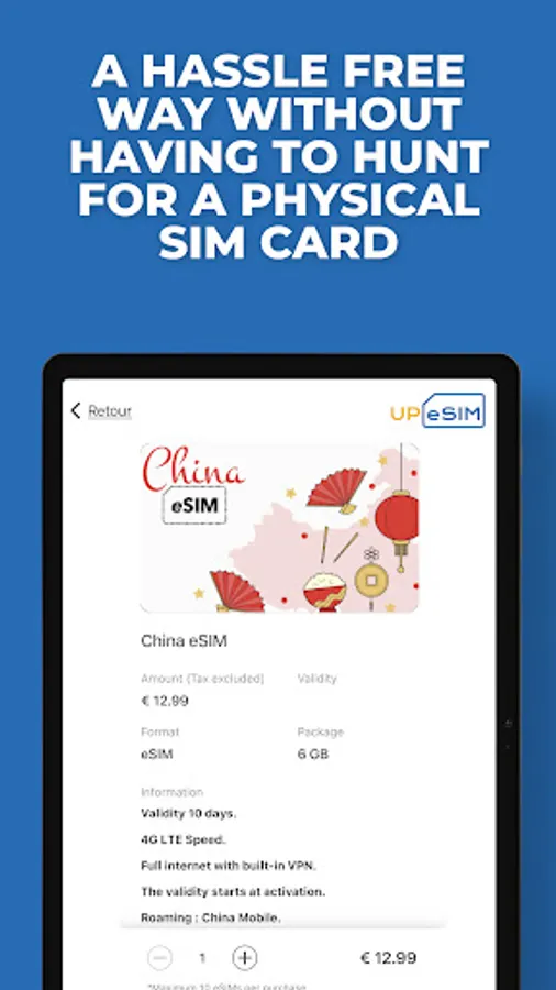 You can instantly download the esim from the UPeSIM free application that is available on the Google Play Store. Just take a minute beforehand to check on our FAQ if your device is compatible. Then let us guide you step by step. Automatic installation is a key feature so you will be connected in no time thanks to instant delivery of the sim card by email with a QR code.