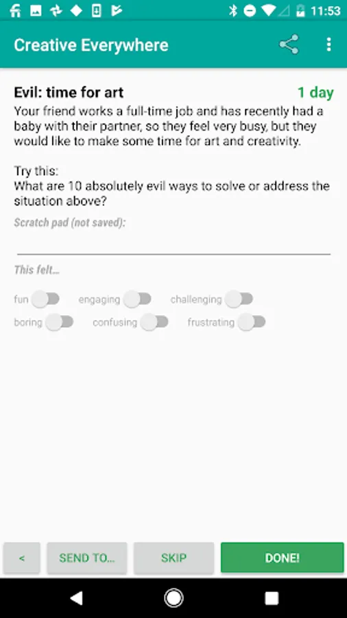 Exercise your creative thinking skills: problem-solve, imagine, reframe, & more!