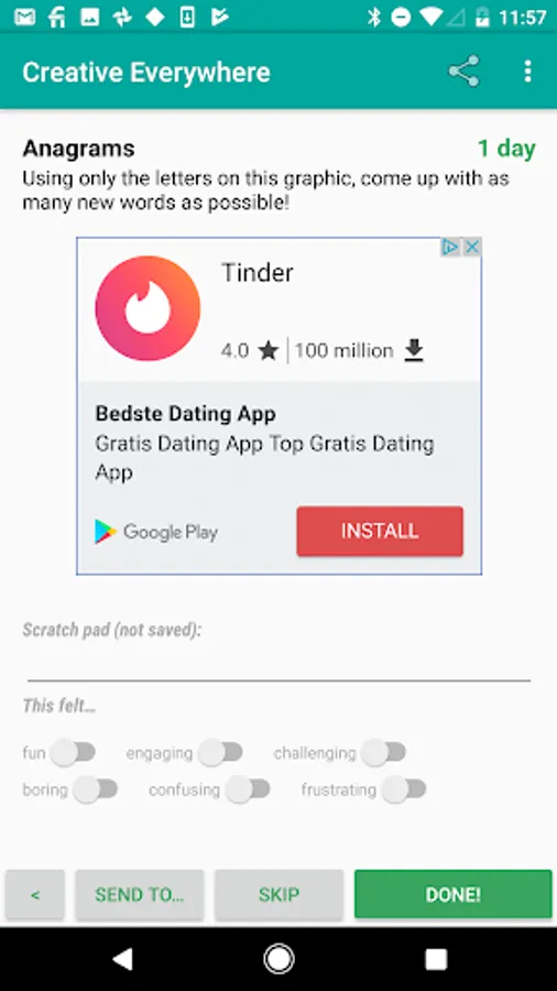 ADS. Ads can be annoying… but after you try this app, you’ll see ads as just another way to strengthen your creative thinking.