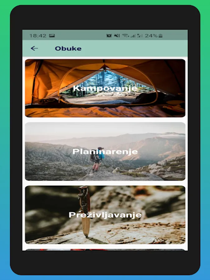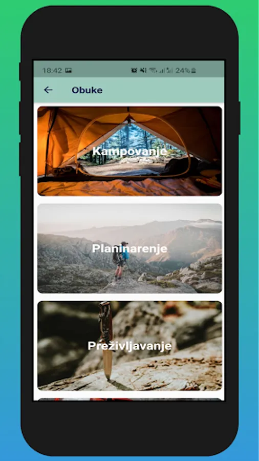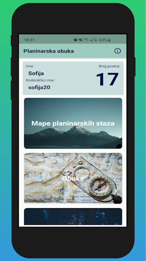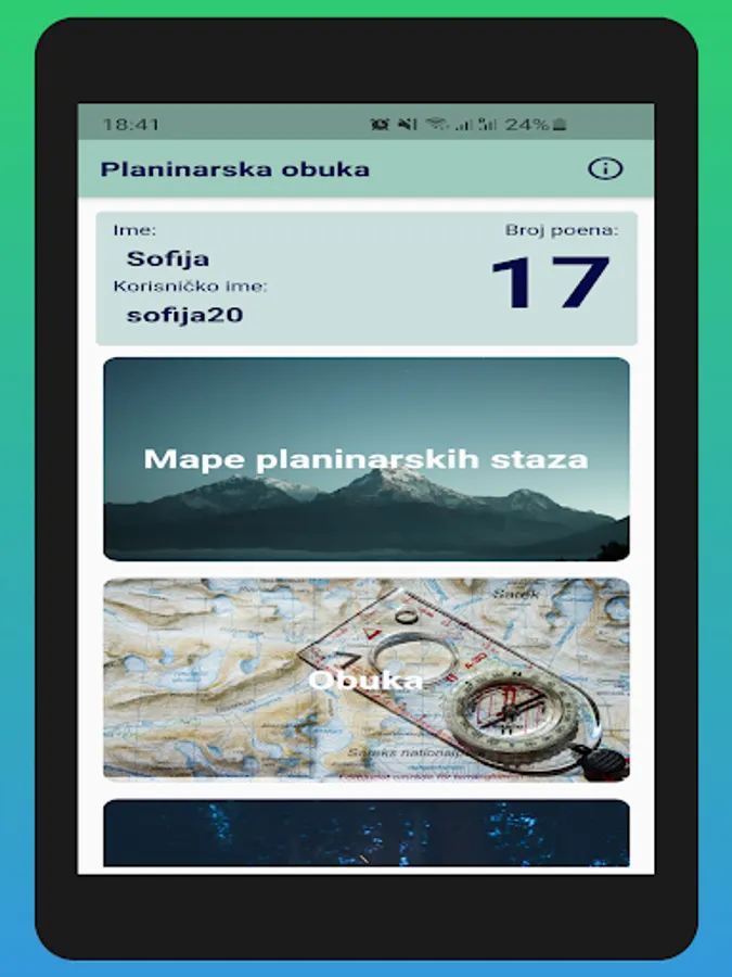 Mountaineering training enables mountaineers and nature lovers to learn with the help of quizzes. Within the app there are trainings for hiking, camping, survival and first aid. In addition to learning in nature and movement in nature, as well as mountaineering activities, users have the opportunity to download mountain maps in the form of images and GPS tracks.