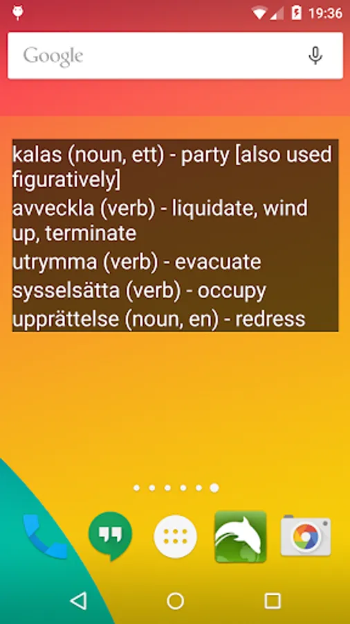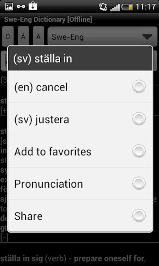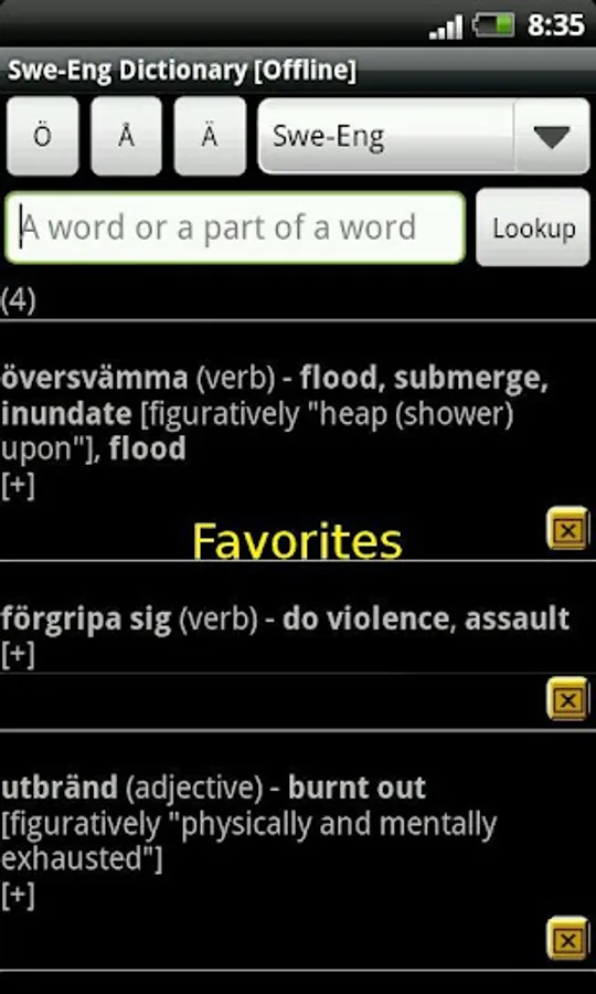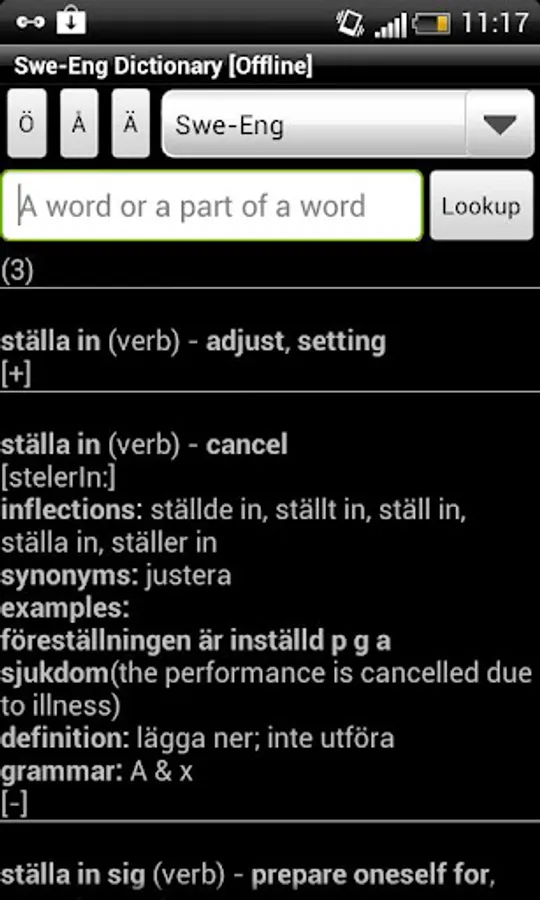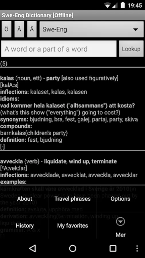 Free Swedish-English dictionary/Phrasebook which works in offline mode.