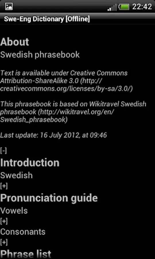The phrasebook is based on Wikitravel, http://wikitravel.org/en/Swedish_phrasebook