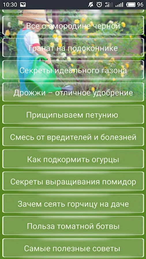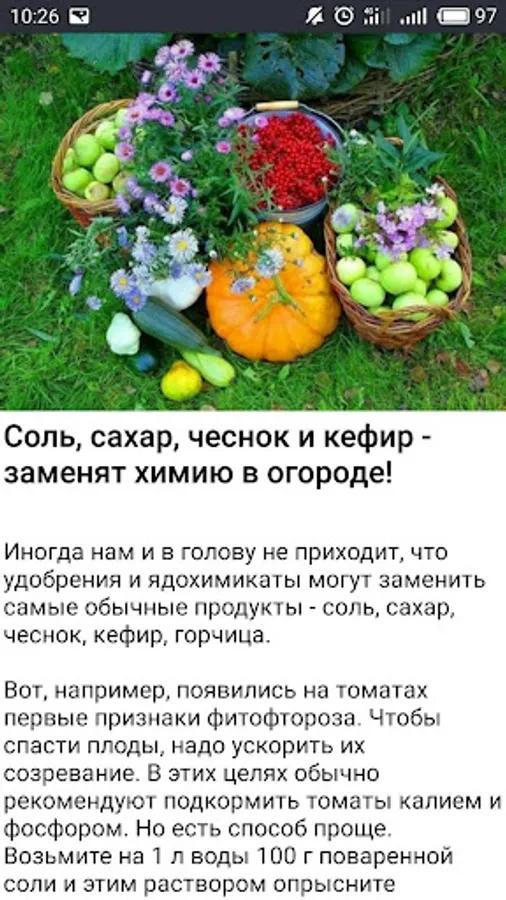 The application contains the most useful tips for gardeners and gardeners, the best recipes of folk remedies for treating plants from pests and diseases, and much more.