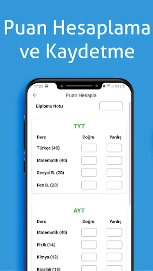 • YKS SCORE CALCULATION: You can also calculate the TYT and AYT score calculations. You can also save your trial results to the app.