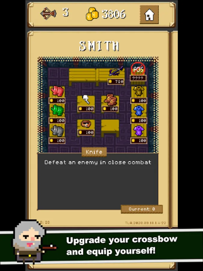 * Earn coins to upgrade your crossbow and buy items to help you on your quest!
