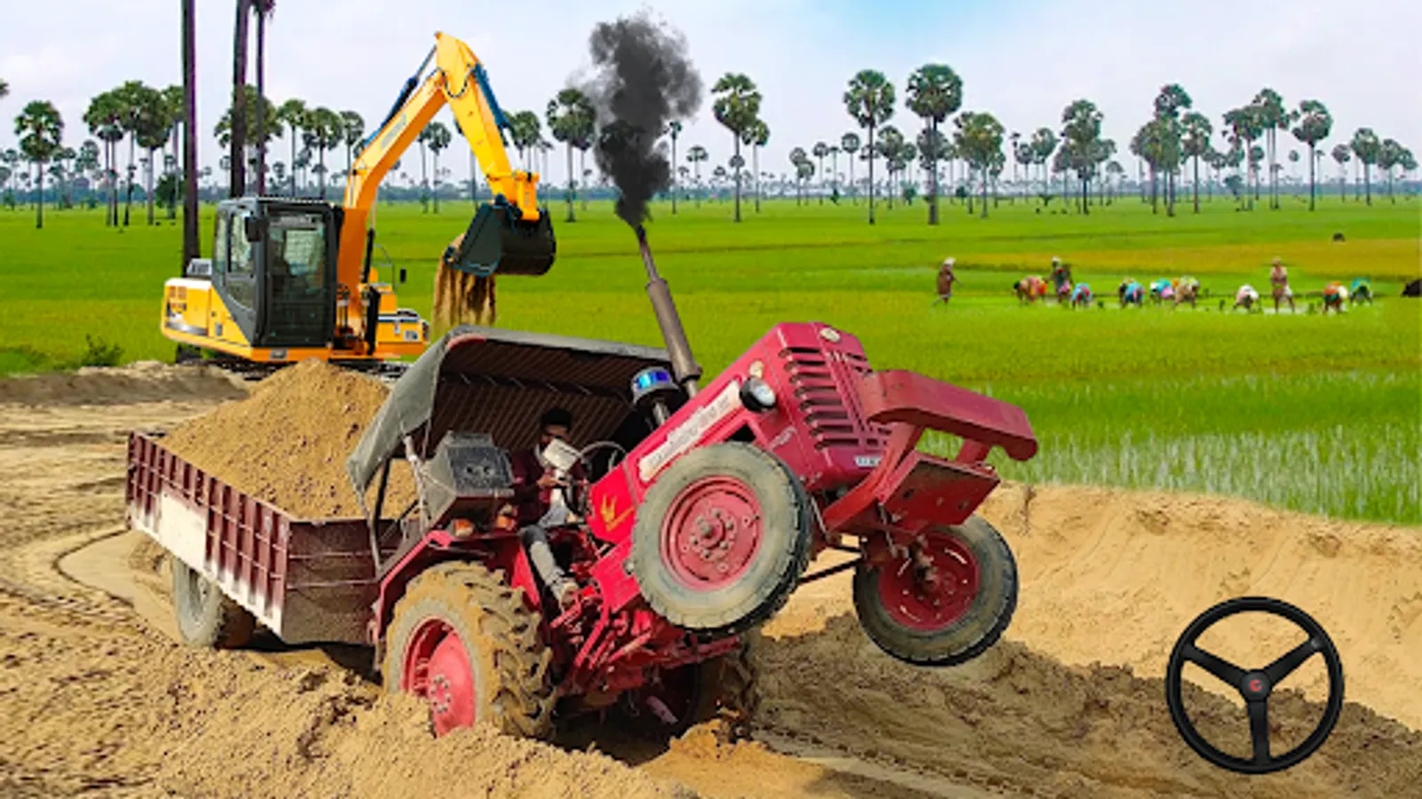 Beautiful locations, views, green hills with curvy zig zag paths, river across the hills, bridges, green Fields give a very fantastic view. And a lot of different game challenges make it different from other tractor trailer games. You can select your trailers according to your choice either hay trailers, desi trolley, Indian trolley, farming animal truck transport trailer, cargo trailers and tractor trolley. Transport cargo to destination to complete the challenge and get reward, by using reward upgrade your tractor.