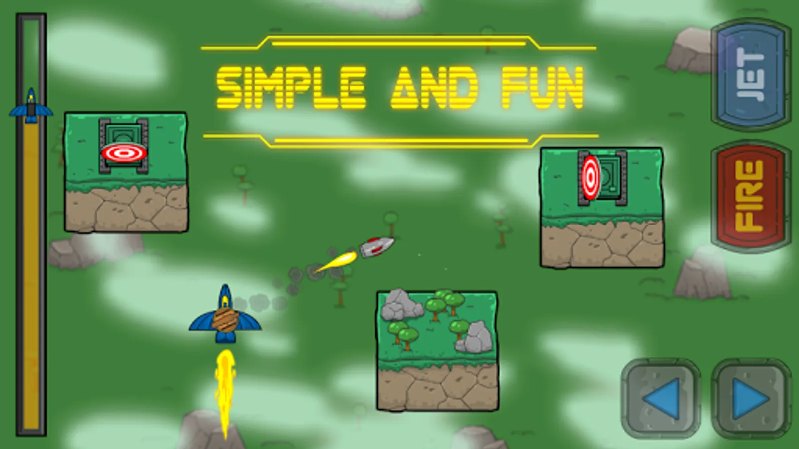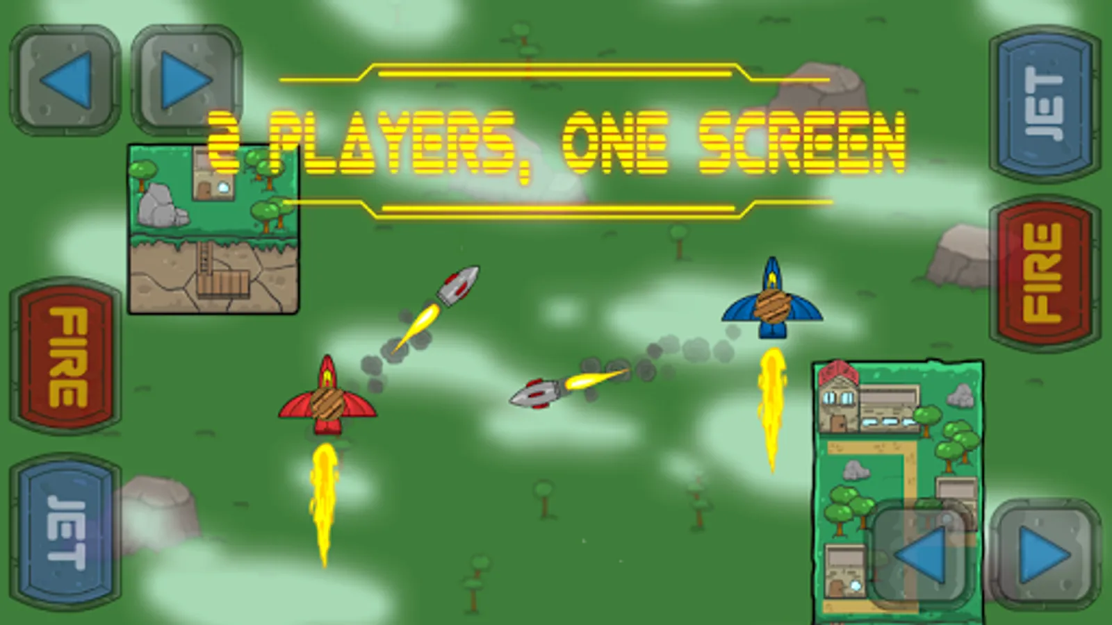 Two men, one screen - it is "2 Players Duel". Play with friends in a "hotseat" mode on one device. You control a jet plane, your aim is to destroy the enemy. Game continues till 10 wins of one player; if one faces obstacles, it is counted as a loss, ramming as a draw. That's the rules! Only tactics, strategy and smartness help you to win in this duel.