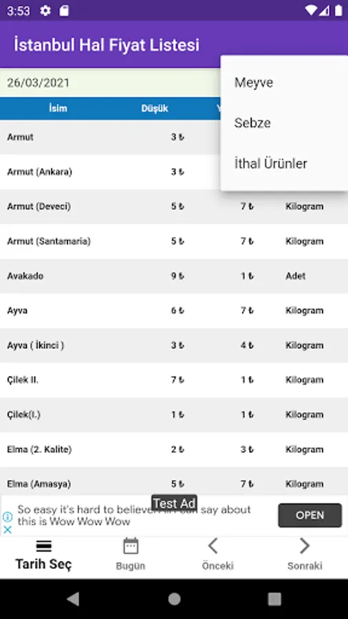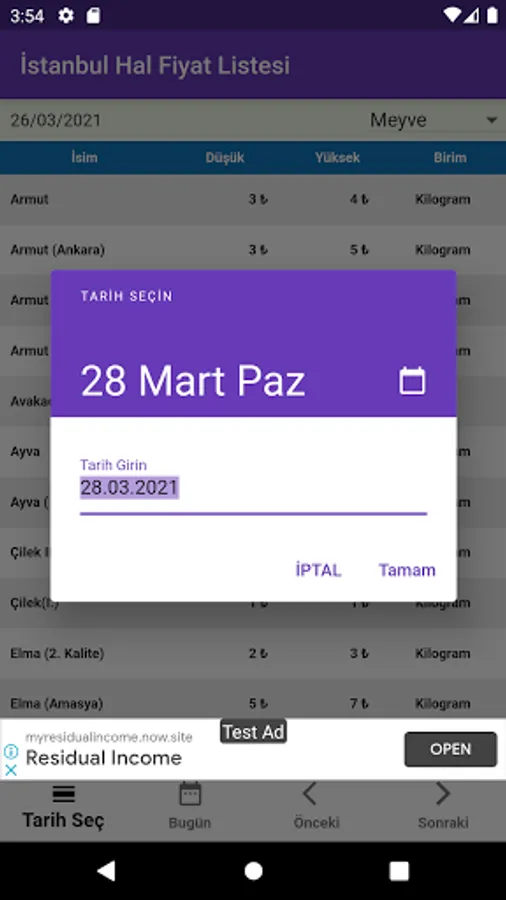 İstanbuldaki Hal içinde fiyat listesini kullanıcıya sunar. Daha önceki günlerdeki fiyatları görüp karşılaştırma yapabilir. Buna bakarak fiyat hakkında genel bi fiyat önerisi alabilirsiniz.