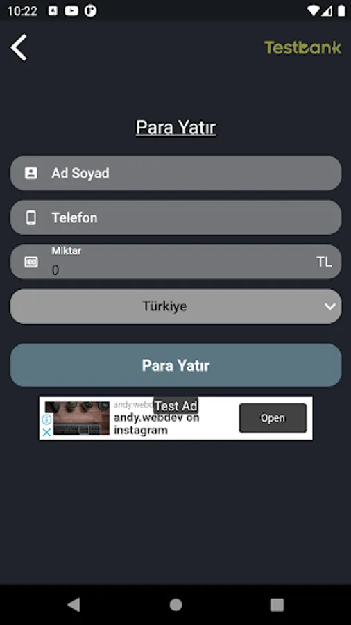 A simple bank applications that they can use when writing test automation for mobile applications. It has nothing to do with a real institution or organization.
