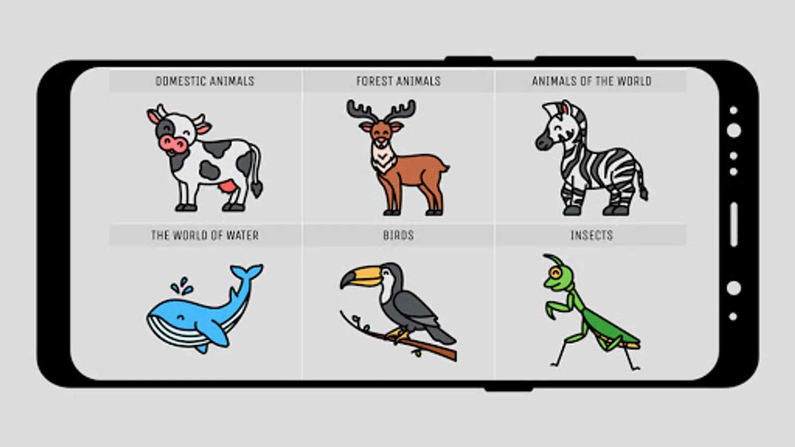 The Animals for kids application is a fascinating guide to the world of animals, marine life, birds and insects for your child. At the moment, the collection of the application has 128 different animals in six categories: