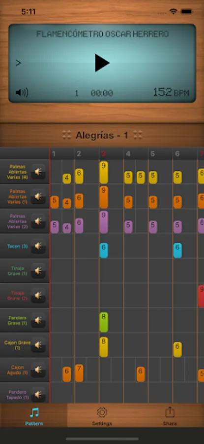 The Flamencómetro Oscar Herrero is a simple, intuitive application that allows you to sequence and creation rhythm patterns.