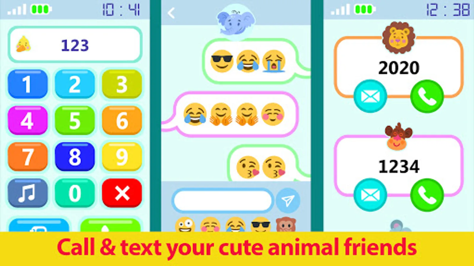 Dial phone numbers on a fake phone dialer game. Pick contacts from contact book and dial them. You can talk to different characters like the cow, elephant, goat, lion and many more. When you call them, you can listen to amazing animal sounds that excite your child. You can even message your favorite animal with amazing emojis.