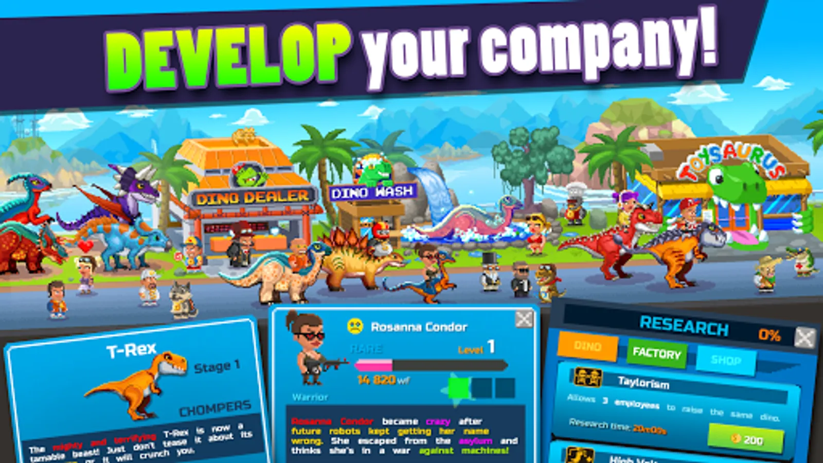 Expand your reputation, improve your factory and develop CRAZY dino-themed businesses to keep your customers happy: pet shops, riding schools, parks, arenas, and many more!