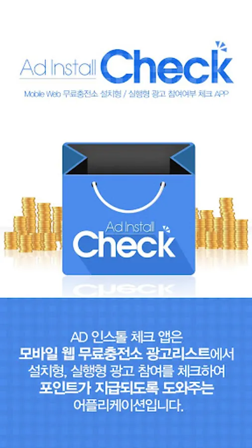 AD 인스톨 체크 앱은 모바일 웹 무료충전소 광고리스트에서 설치형, 실행형 광고 참여를 체크하여 포인트를 지급해주는 어플리케이션입니다.