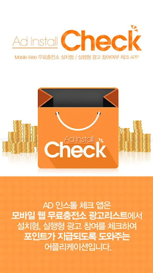 AD Install Check V2 app is an application that pays points by checking participation in various advertisements such as installation type and execution type at the Mobile WEB free charging station.