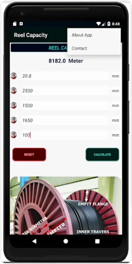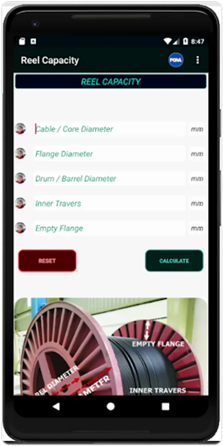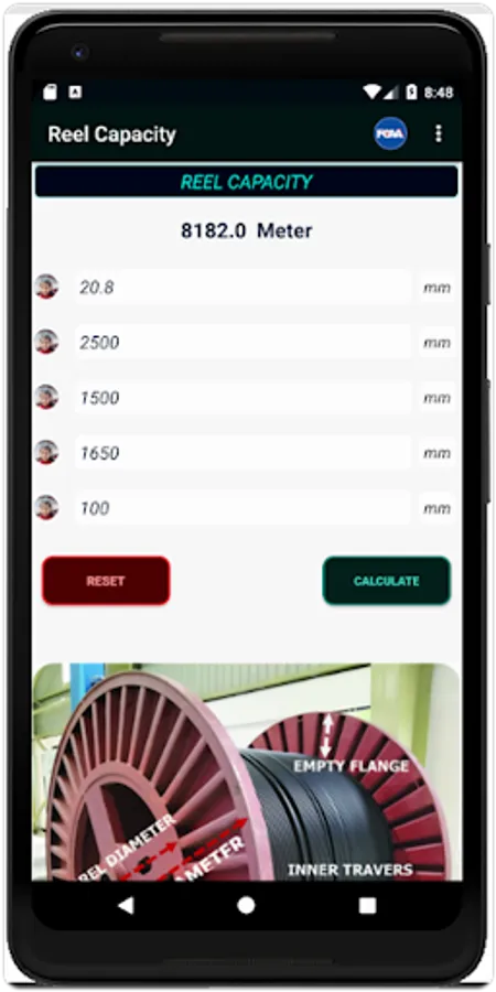 FOAA REEL CAPACITY is very simple, user friendly and easy to use mobile app to find maximum capacity of reel in meter.