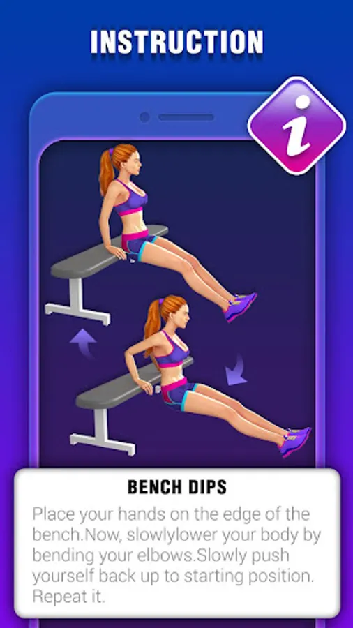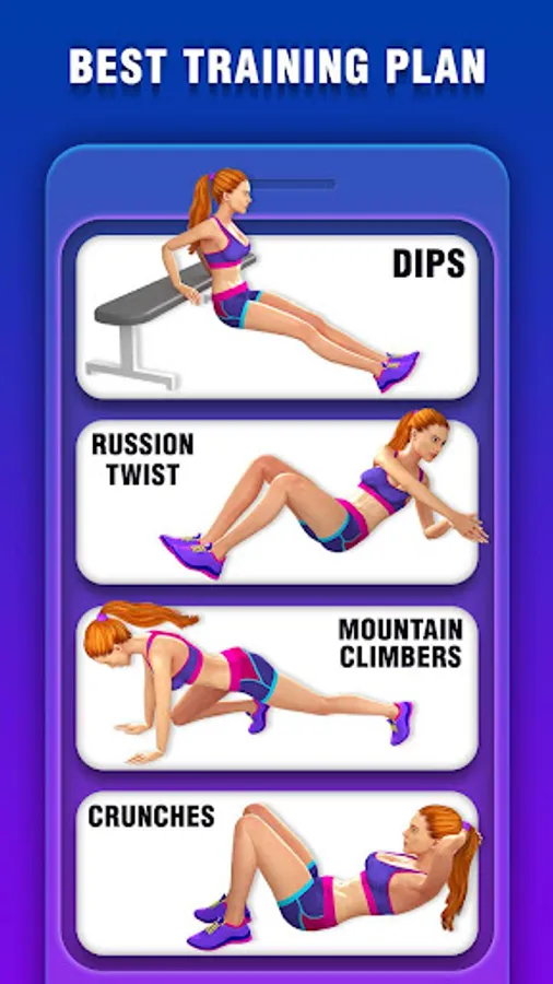 * App includes a list of belly fat burning workout, arm workout, chest workout, butt workout, and abs workouts for women