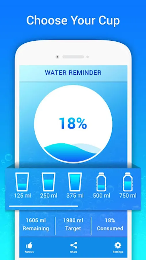 Enter your weight and age in this water tracker app or hydration reminder app to get an adequate quantity of water to intake.