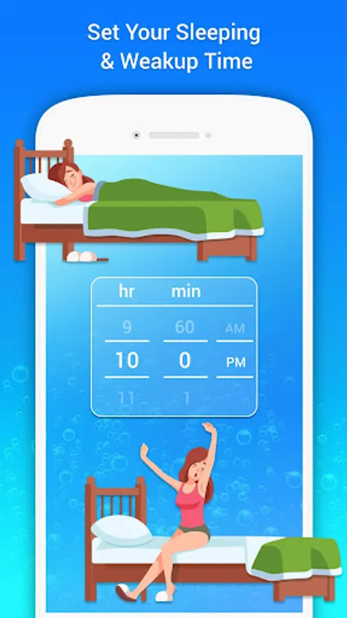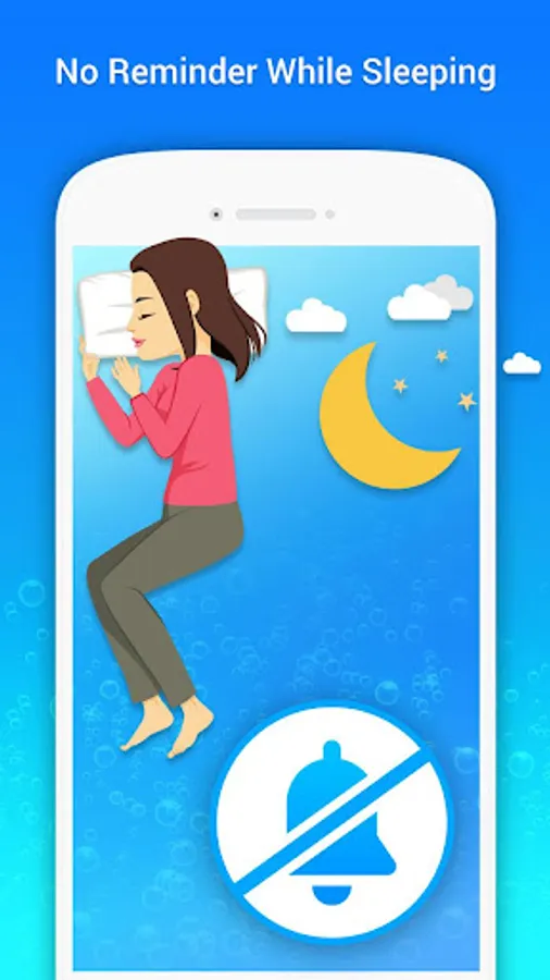 Set the water reminder automatically based on your sleep time, wake up time and reminder interval. Based on these water drink reminder will determine how much water your body needs on a daily basis