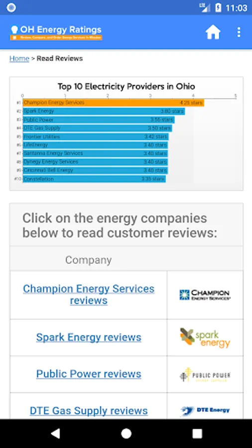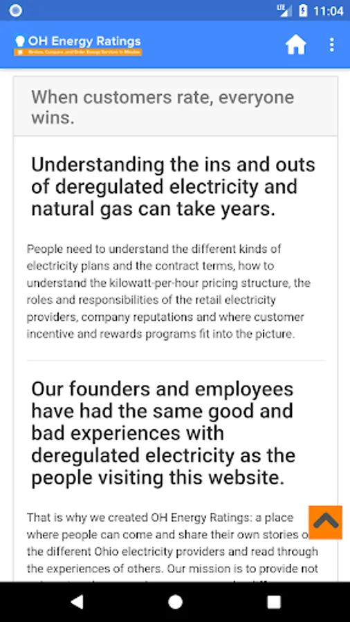 The Ohio Energy Ratings app helps people make informed buying decisions through its consumer reviews platform and is a reliable source for valuable consumer insight, advice, in-depth energy company service evaluations, and personalized recommendations. Our mission is to help consumers harness the power of information to find, compare, and buy electricity and energy services from the best providers.