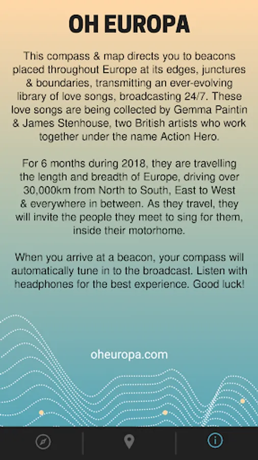 This compass & map directs you to beacons placed throughout Europe at its edges, junctures & boundaries, transmitting an ever-evolving library of love songs, broadcasting 24/7. These love songs are being collected by Gemma Paintin & James Stenhouse, two British artists who work together under the name Action Hero.