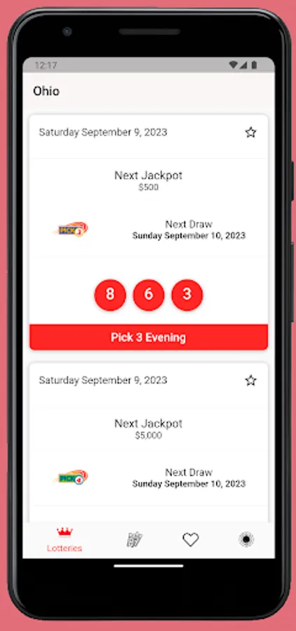 Get the winning lottery numbers for the Ohio Lottery (also known as the OH Lottery). Results for each game are updated every 5 minutes! You can save view game winners for each game, get frequency numbers, see the hot and cold numbers for each game, receive push notifications, or search past results! The app is very simple and easy to use. So if you are a lottery player - download this app now and get the winning numbers!