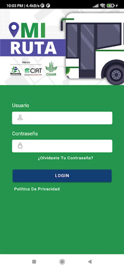 Mi Ruta Ciat - Bioversity International is an App that makes it easier for the organization's collaborators to get from their home to their workplace. The App allows to know the current location of the collaborator, the location of the defined stop, and the location of the route.