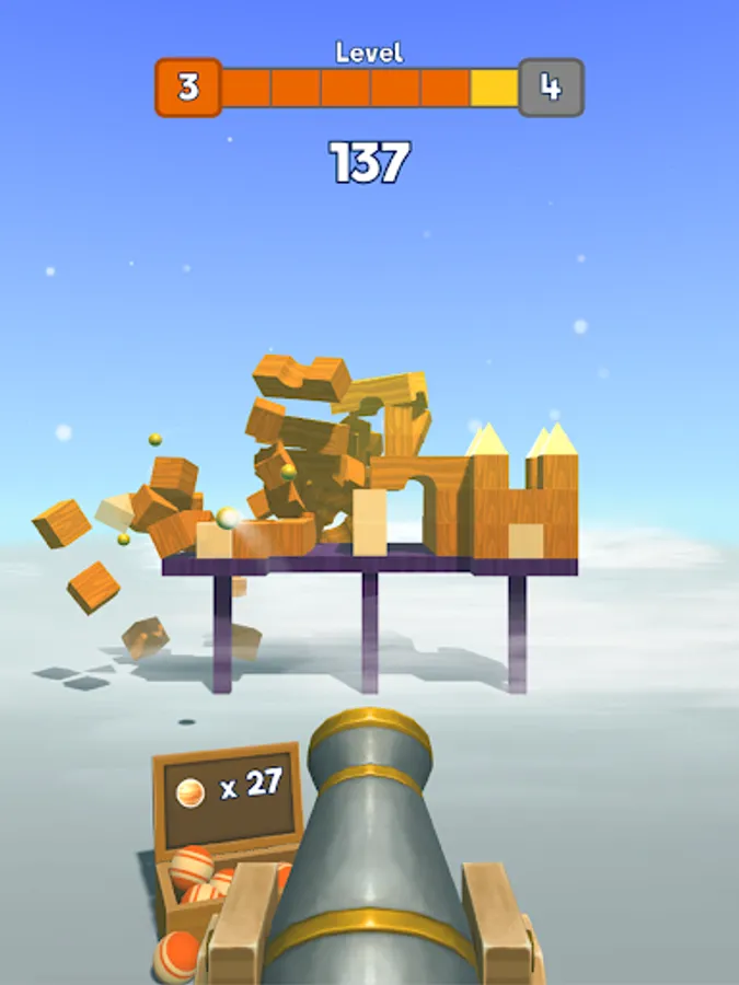 Throw balls at structures to make them collapse but be careful not to exceed the allowed limit!